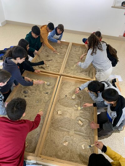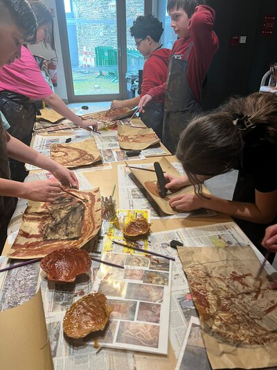 Nous avons visité le musée de la Préhistoire pour observer et comprendre les découvertes faites à la Roche, puis nous nous sommes essayés à la vie des premiers humains et humaines préhistoriques ou au métier d’archéologue