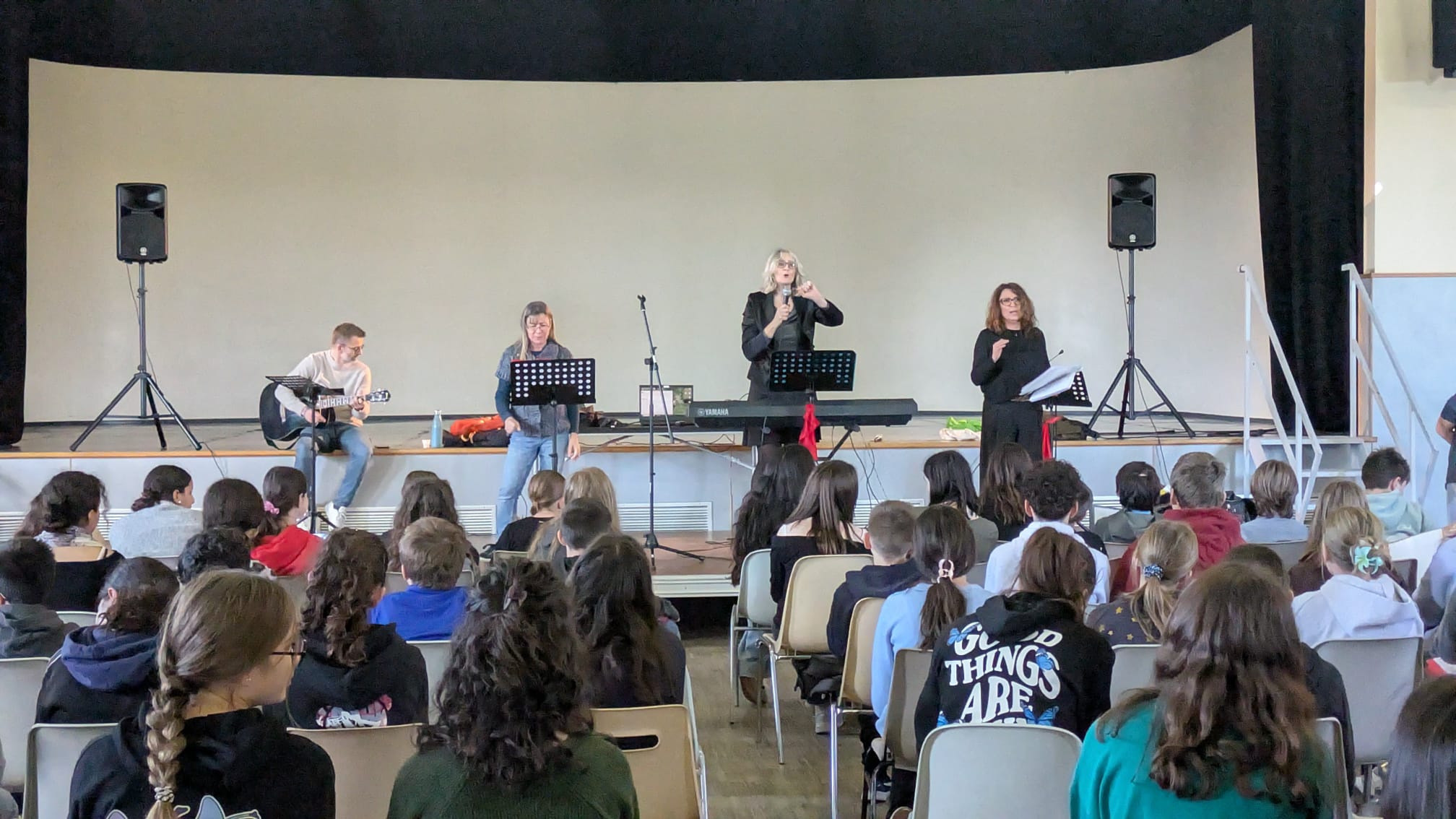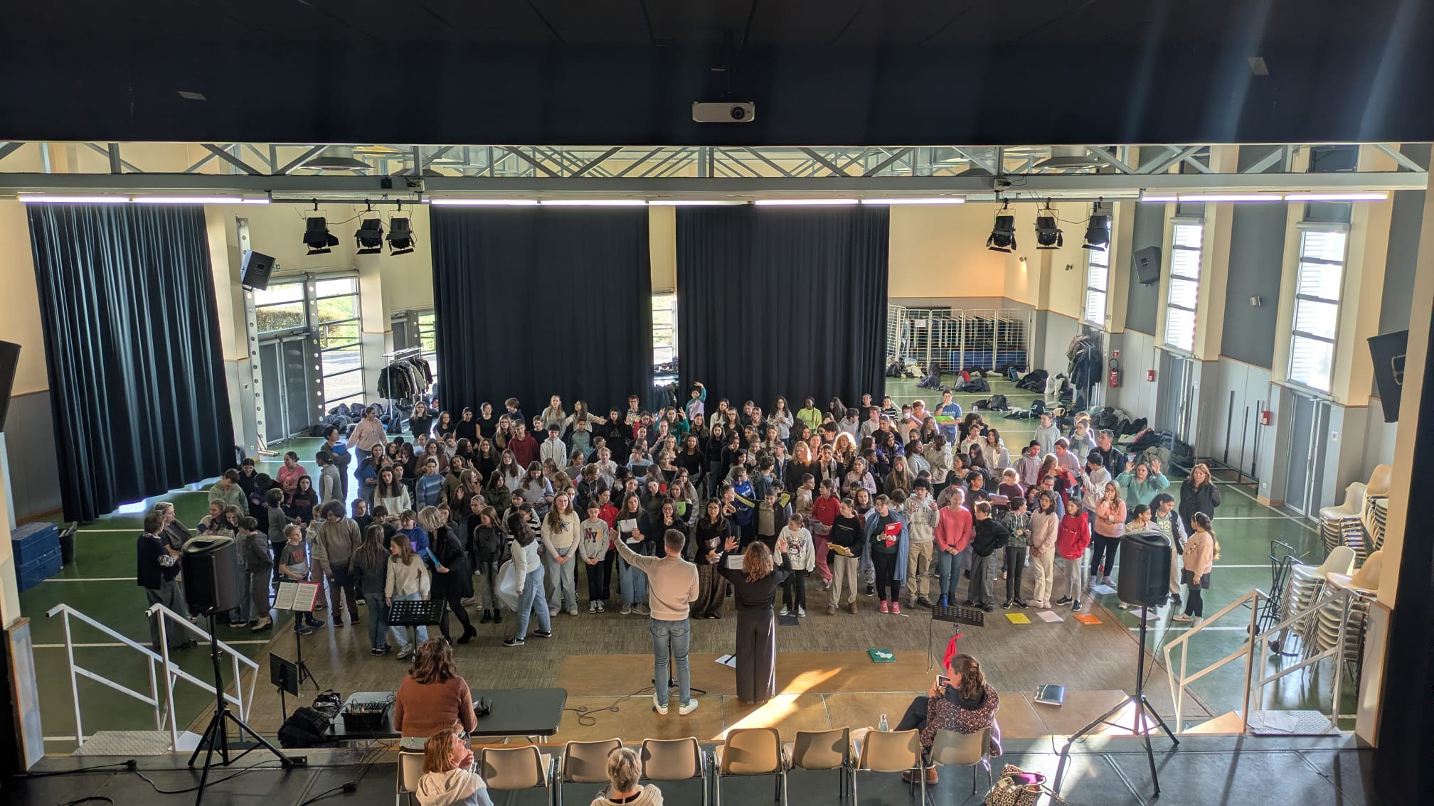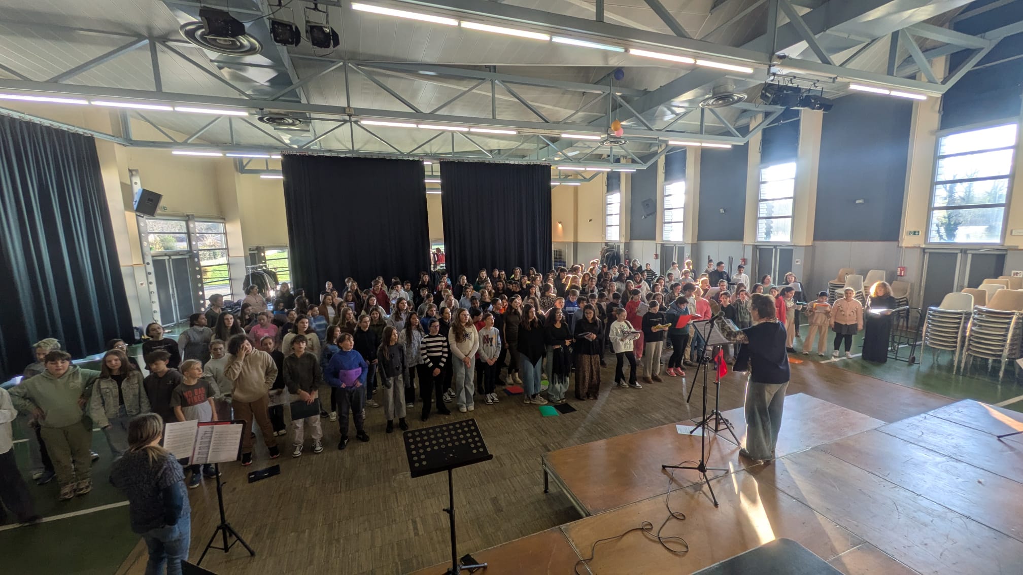 Jeudi 27 novembre, les élèves de la chorale du collège sont allé.es à St Symphorien d’Ozon pour répéter les 4 premiers chants de la période du spectacle "la chorale fait son jukebox". Les 200 élèves des collèges de Mions, St Pierre, St Symphorien et Feyzin étaient réuni.es pour la journée.